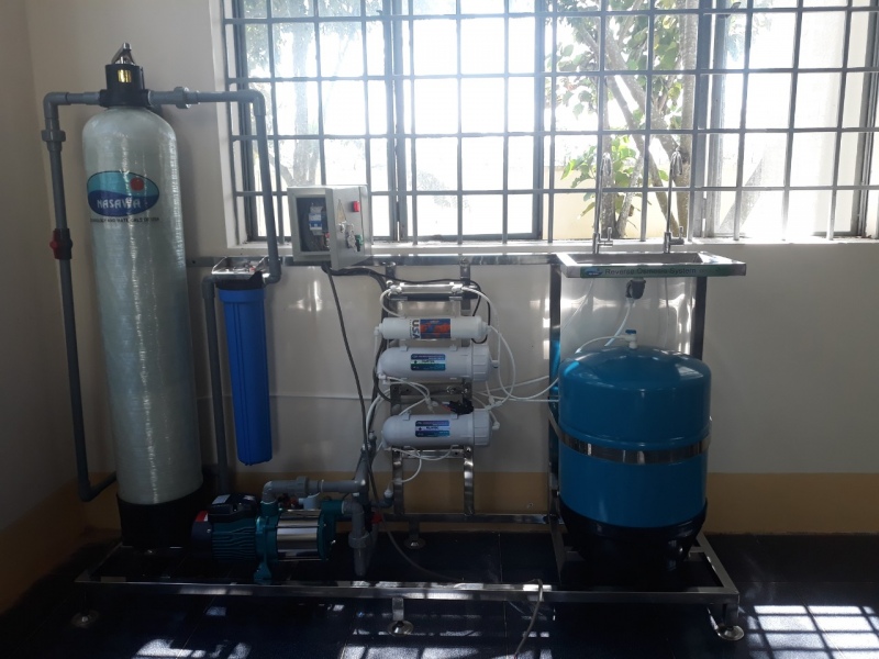 Hệ thống lọc nước RO công suất 150 lít/giờ. Công dụng: Tạo nước tinh khiết tức thời, không cần đun nấu.
